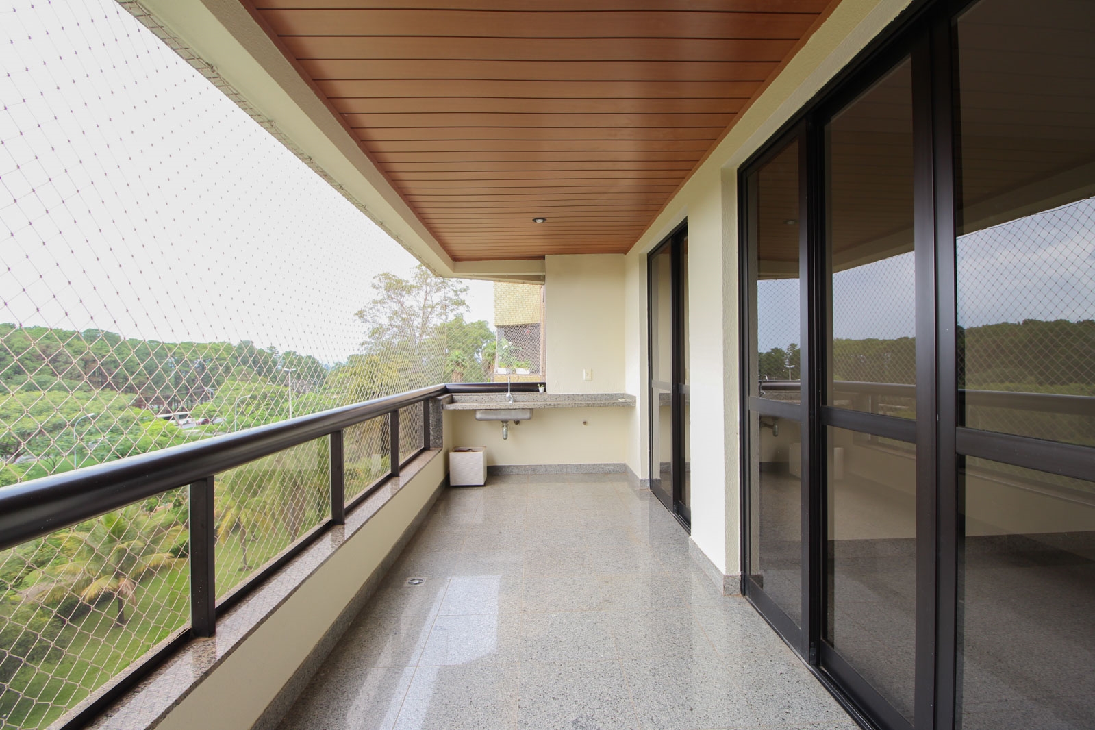 * Varanda gourmet com vista livre para o parque da cidade,